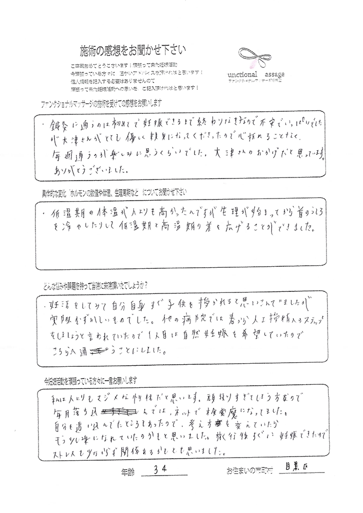 ファンクショナルマッサージ新宿院に通い始める前に5年程、不妊治療をしていました。