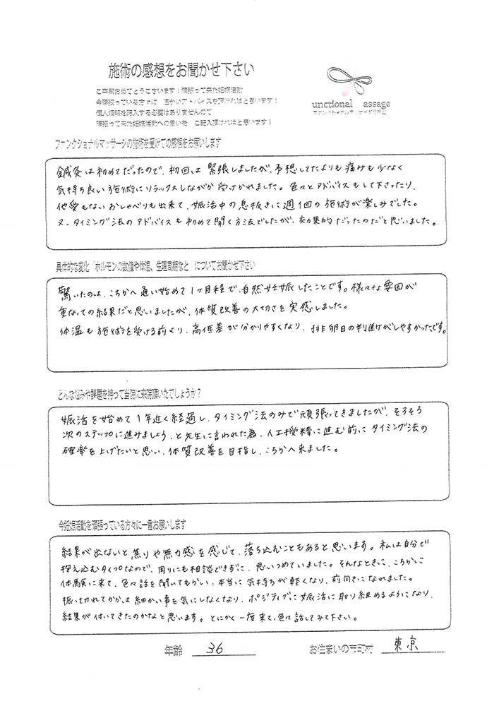 ファンクショナルマッサージ新宿院に通い始める前に5年程、不妊治療をしていました。